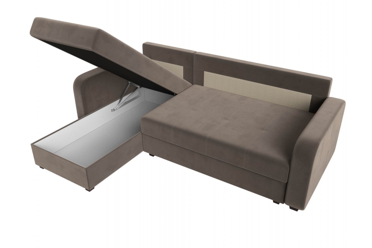 Угловой диван Ливерпуль Левый еврокнижка велюр коричневый 230х85х140 дСП, ЛДСП, Брус, Фанера артикул 10246822