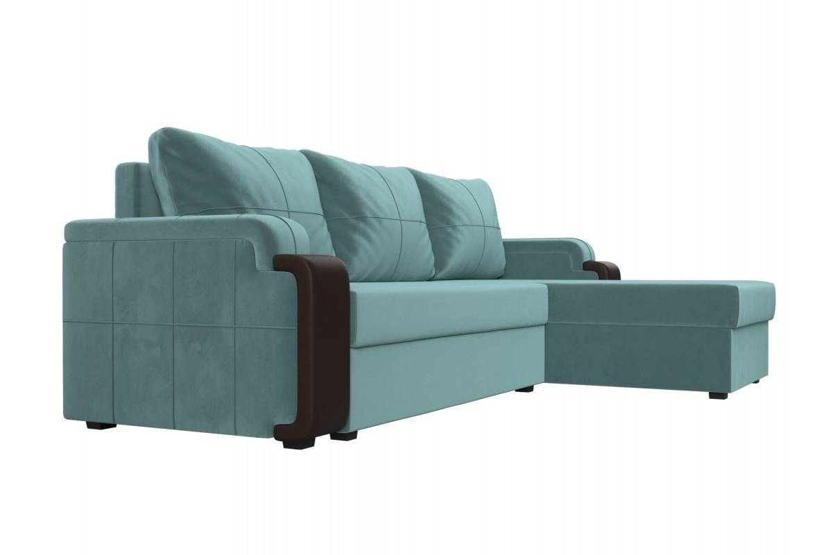 Угловой диван Николь Правый еврокнижка экокожа, Велюр голубой, Коричневый 234х80х142 дСП, Брус, ЛДСП артикул 10196995
