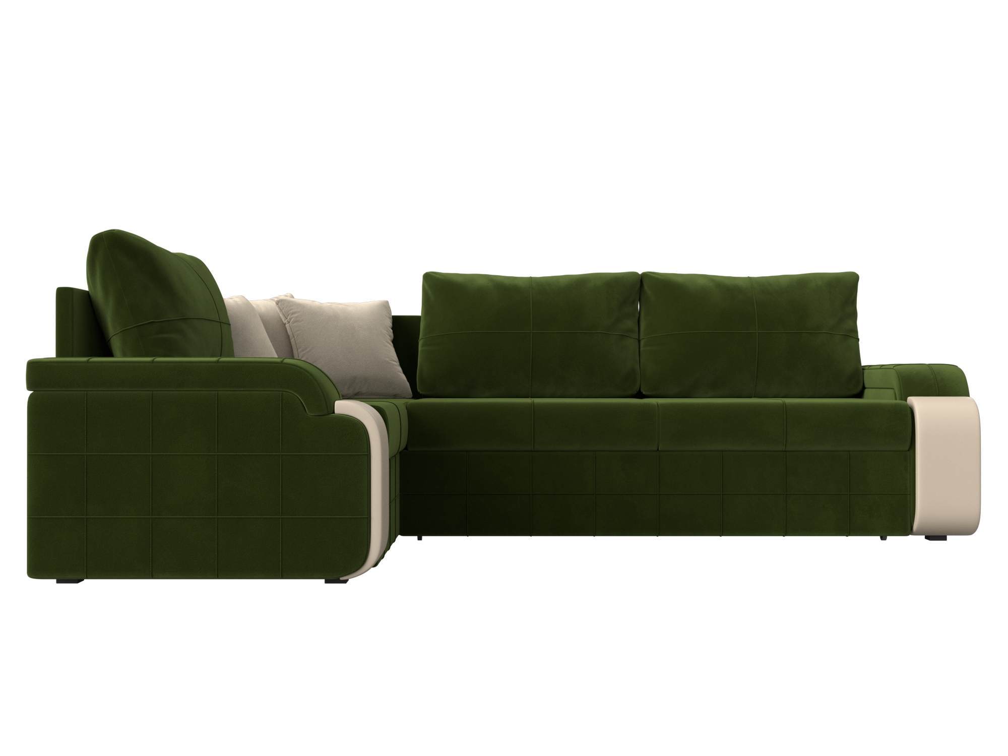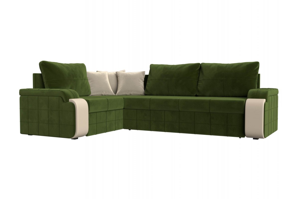 Угловой диван Николь Левый дельфин микровельвет, Экокожа зеленый, Бежевый 264х91х188 лДСП, ДСП, Брус артикул 10032835