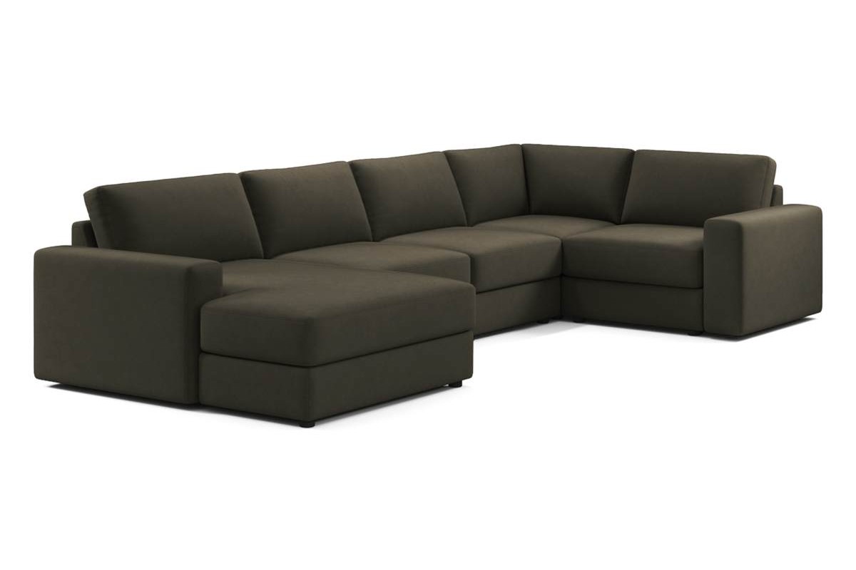 Угловой диван Оксфорд 24 XL с оттоманкой без механизма велюр коричневый 390х85х208 дСП артикул 10296160