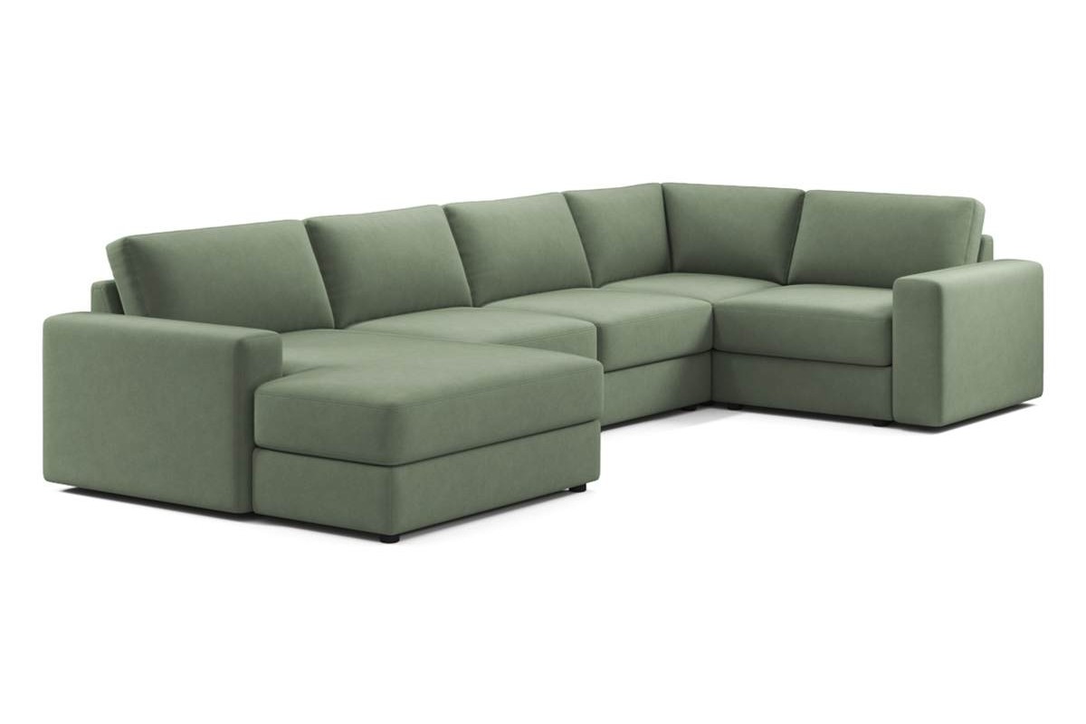 Угловой диван Оксфорд 24 XL с оттоманкой без механизма велюр зеленый 390х85х208 дСП артикул 10296161