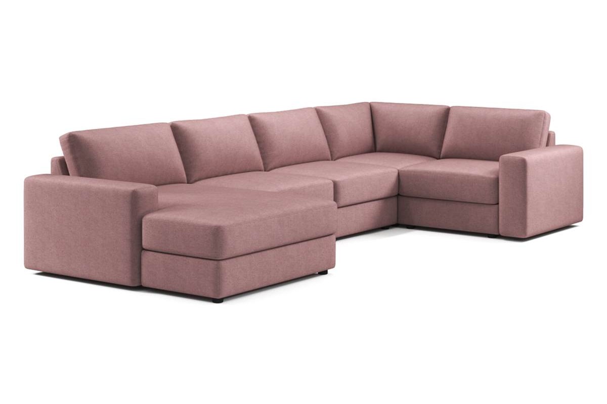 Угловой диван Оксфорд 24 XL с оттоманкой без механизма рогожка розовый 390х85х208 дСП артикул 10296151