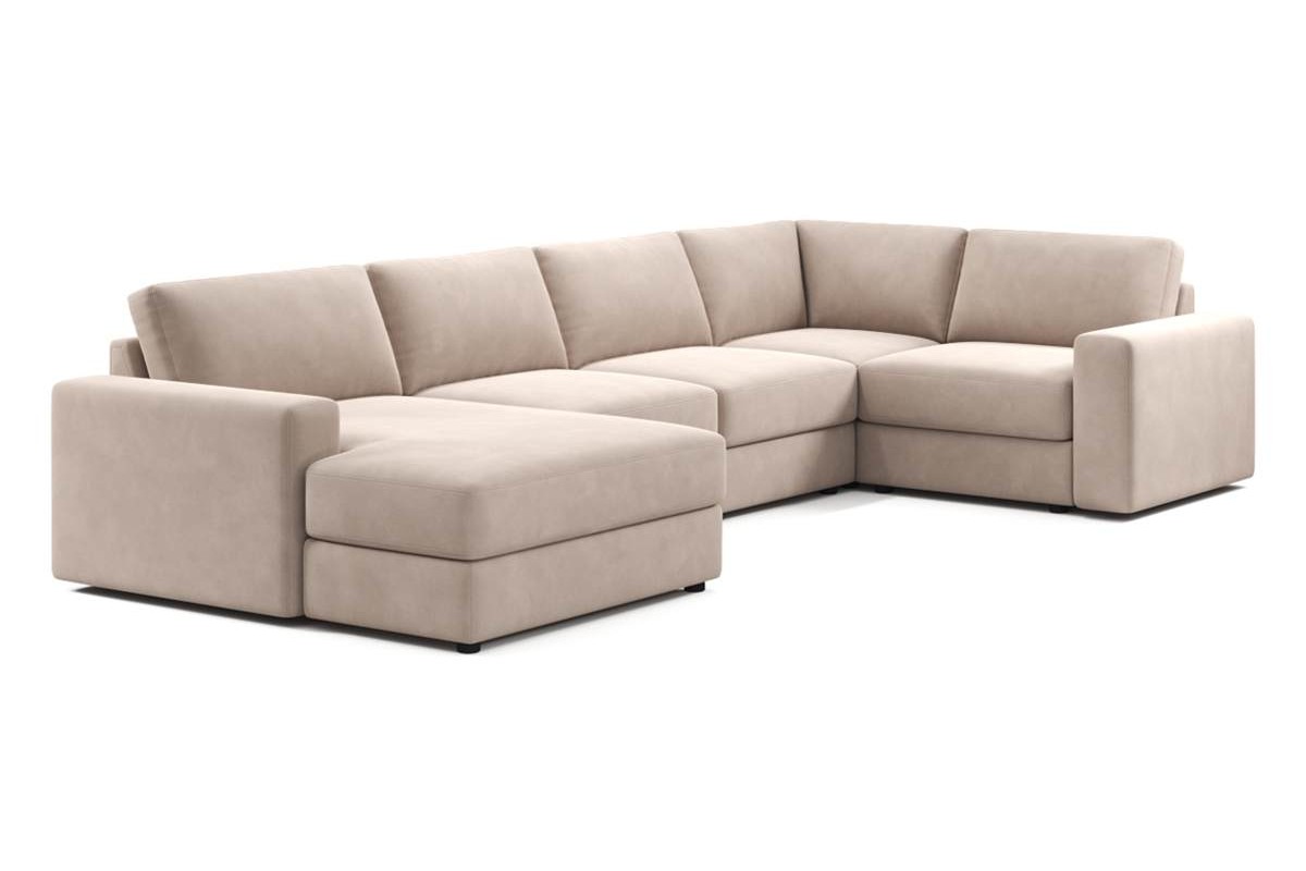 Угловой диван Оксфорд 24 XL с оттоманкой без механизма микровелюр бежевый 390х85х208 дСП артикул 10296154