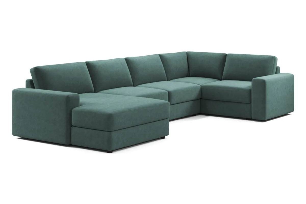 Угловой диван Оксфорд 24 XL с оттоманкой седафлекс велюр зеленый 390х85х208 дСП артикул 10296621