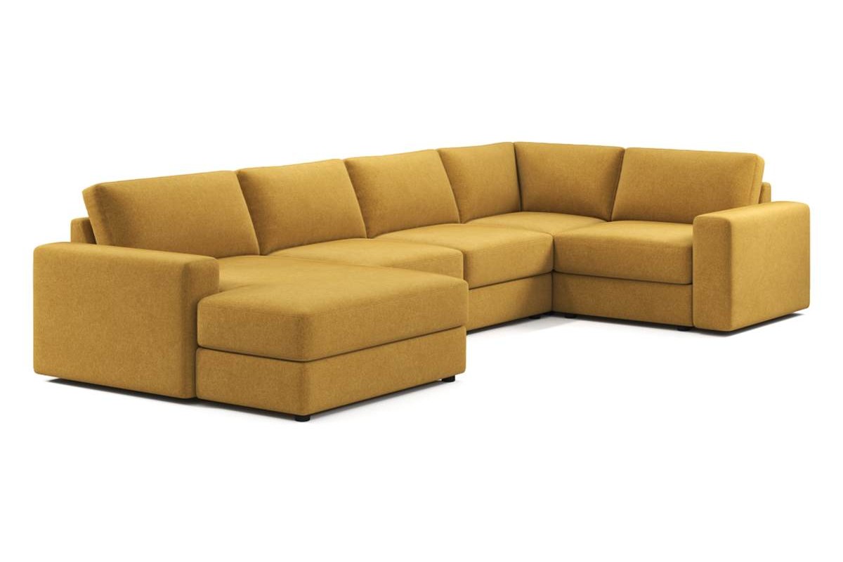 Угловой диван Оксфорд 24 XL с оттоманкой без механизма велюр желтый 390х85х208 дСП артикул 10296158