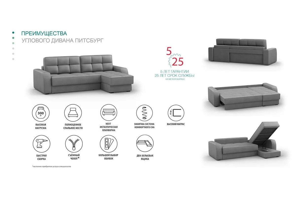 Угловой диван Питсбург NEXT тик-так микрошенилл фиолетовый 276х102х164 металлокаркас артикул 10431266