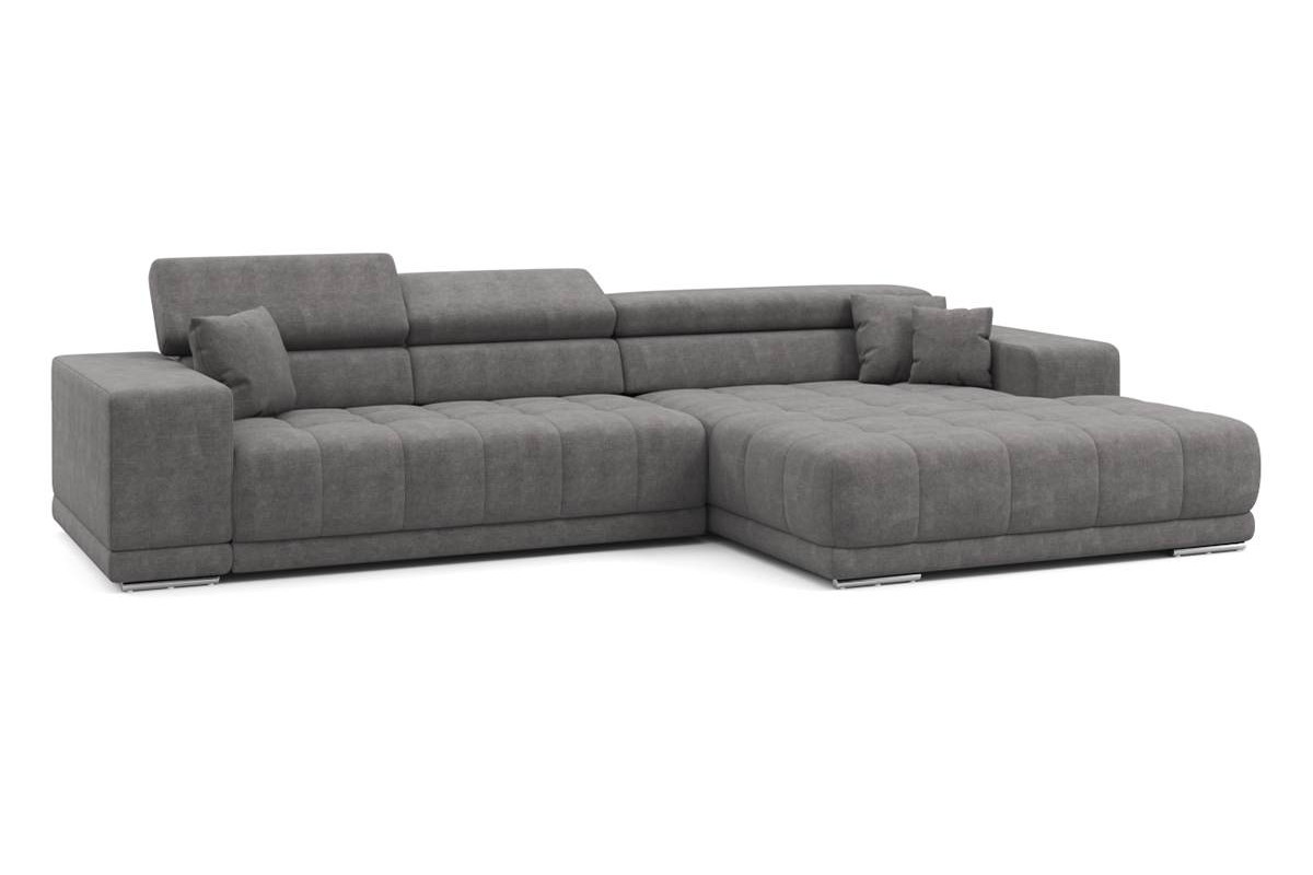 Угловой диван Satellite-S с широкой оттоманкой велюр серый 329х92х190 дерево артикул 10479327