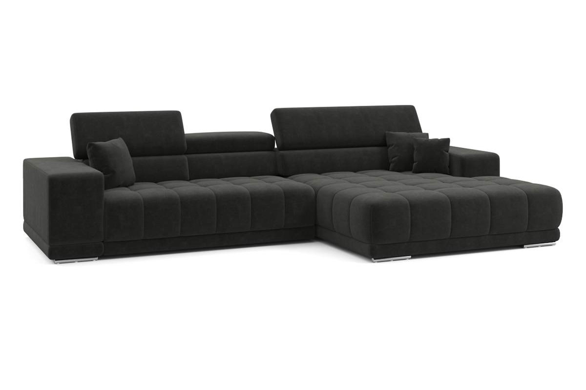 Угловой диван Satellite-S с широкой оттоманкой велюр серый 329х92х190 дерево артикул 10479329