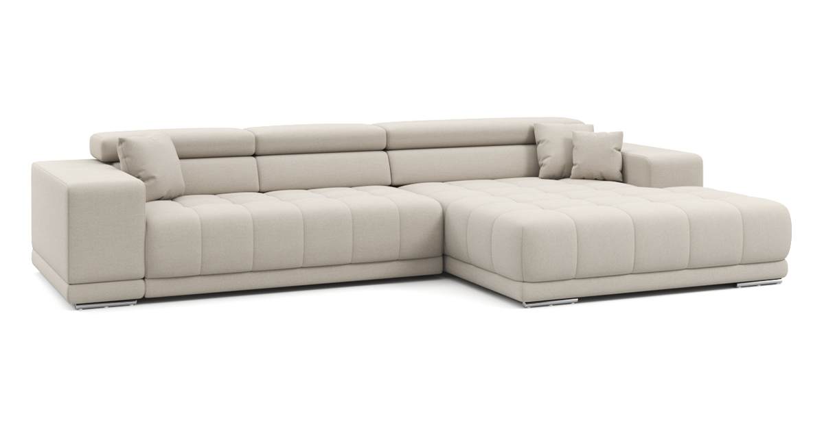 Угловой диван Satellite-S с широкой оттоманкой микрошенилл бежевый 329х92х190 дерево артикул 10479334