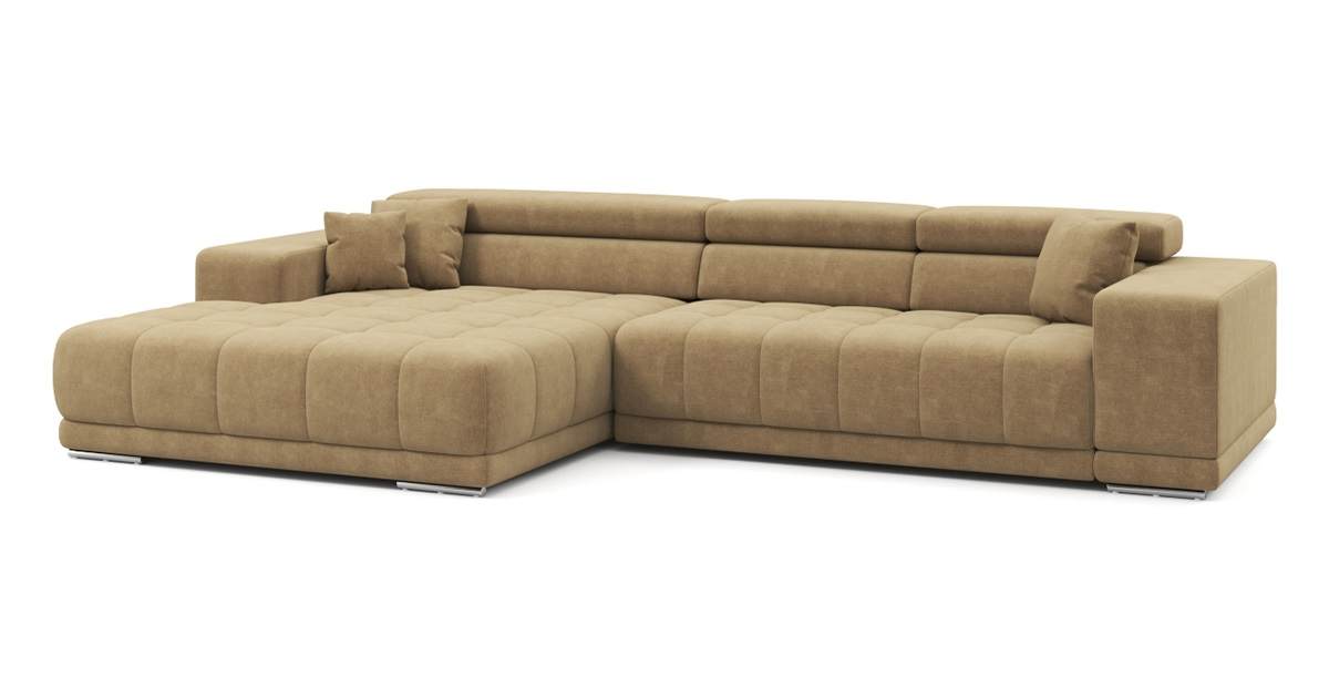 Угловой диван Satellite-S с широкой оттоманкой велюр бежевый 329х92х190 дерево артикул 10479236