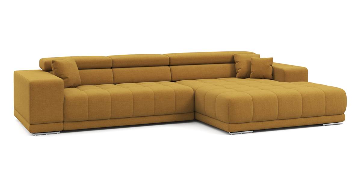 Угловой диван Satellite-S с широкой оттоманкой микрошенилл желтый 329х92х190 дерево артикул 10479340