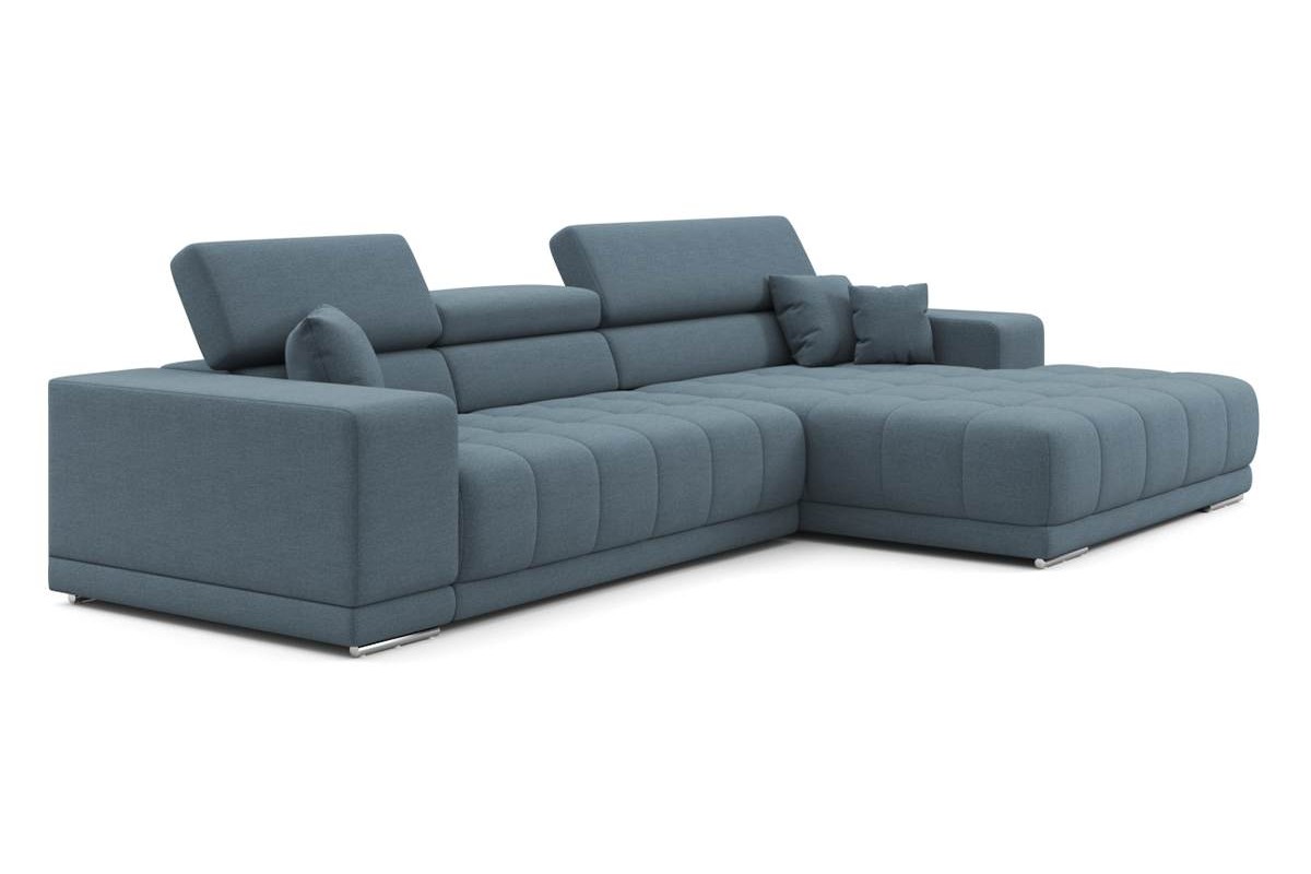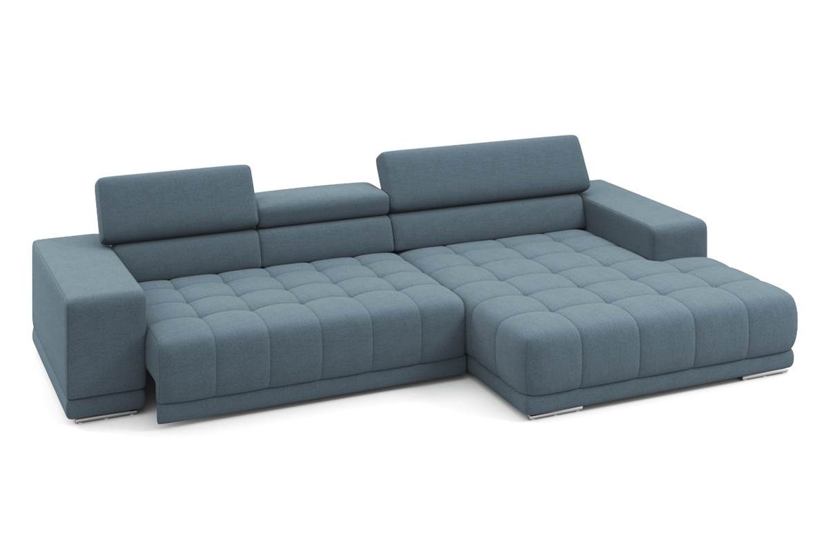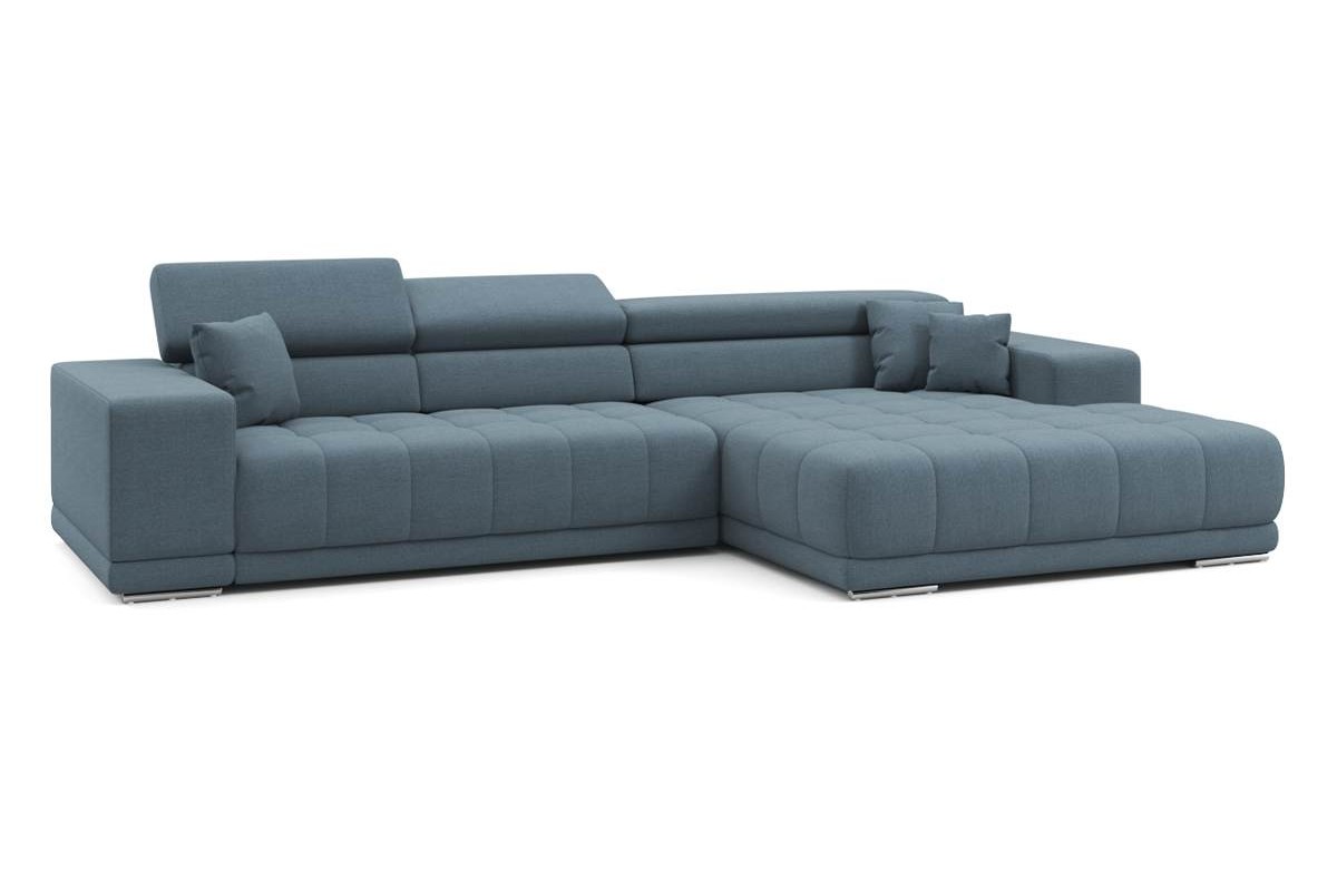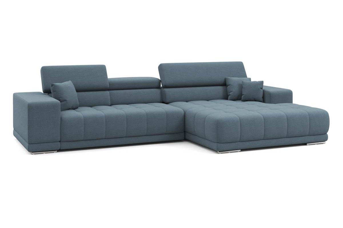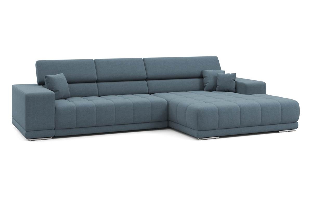 Угловой диван Satellite-S с широкой оттоманкой микрошенилл синий 329х92х190 дерево артикул 10479341