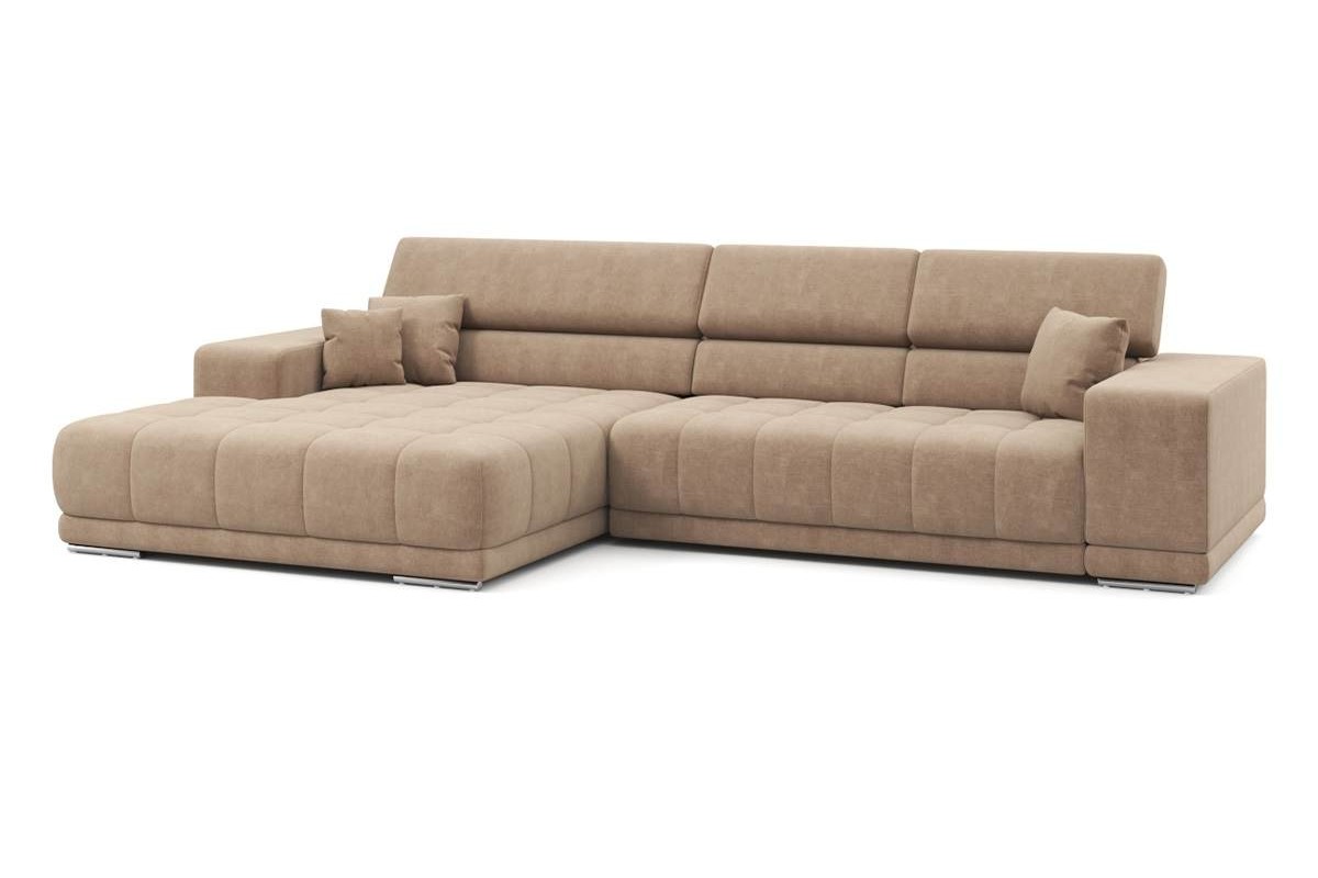Угловой диван Satellite-S с широкой оттоманкой велюр бежевый 329х92х190 дерево артикул 10479237