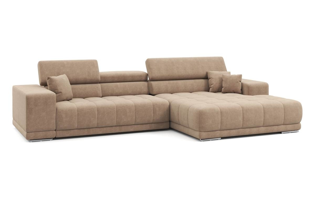 Угловой диван Satellite-S с широкой оттоманкой велюр бежевый 329х92х190 дерево артикул 10479352
