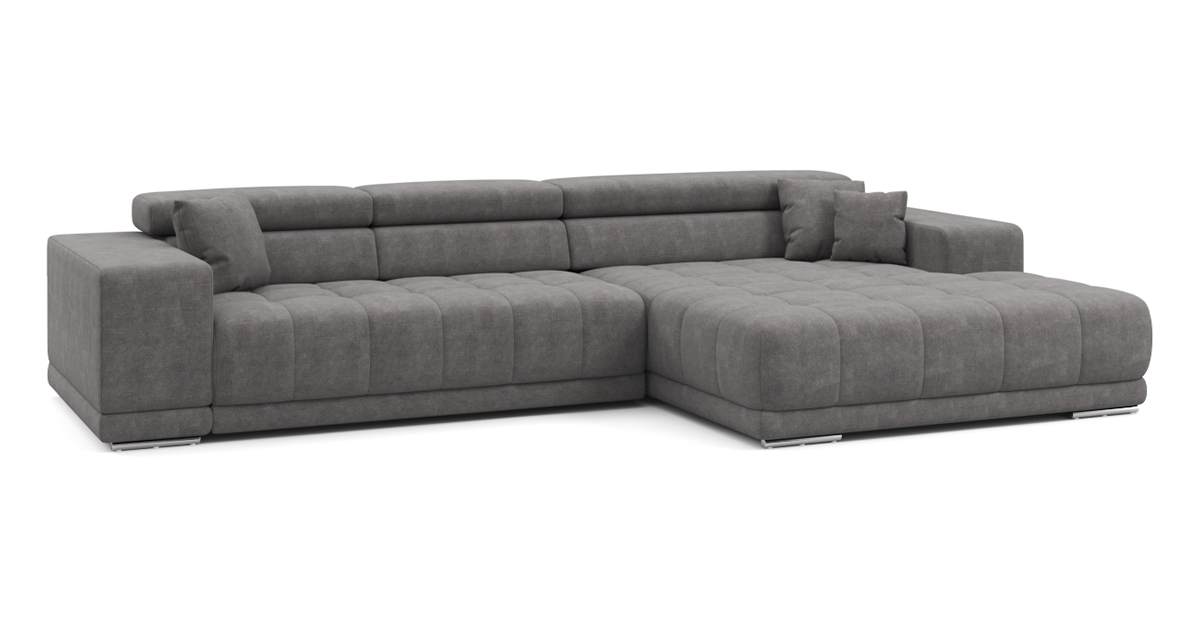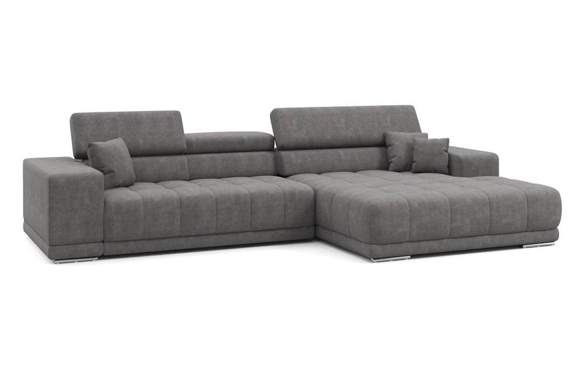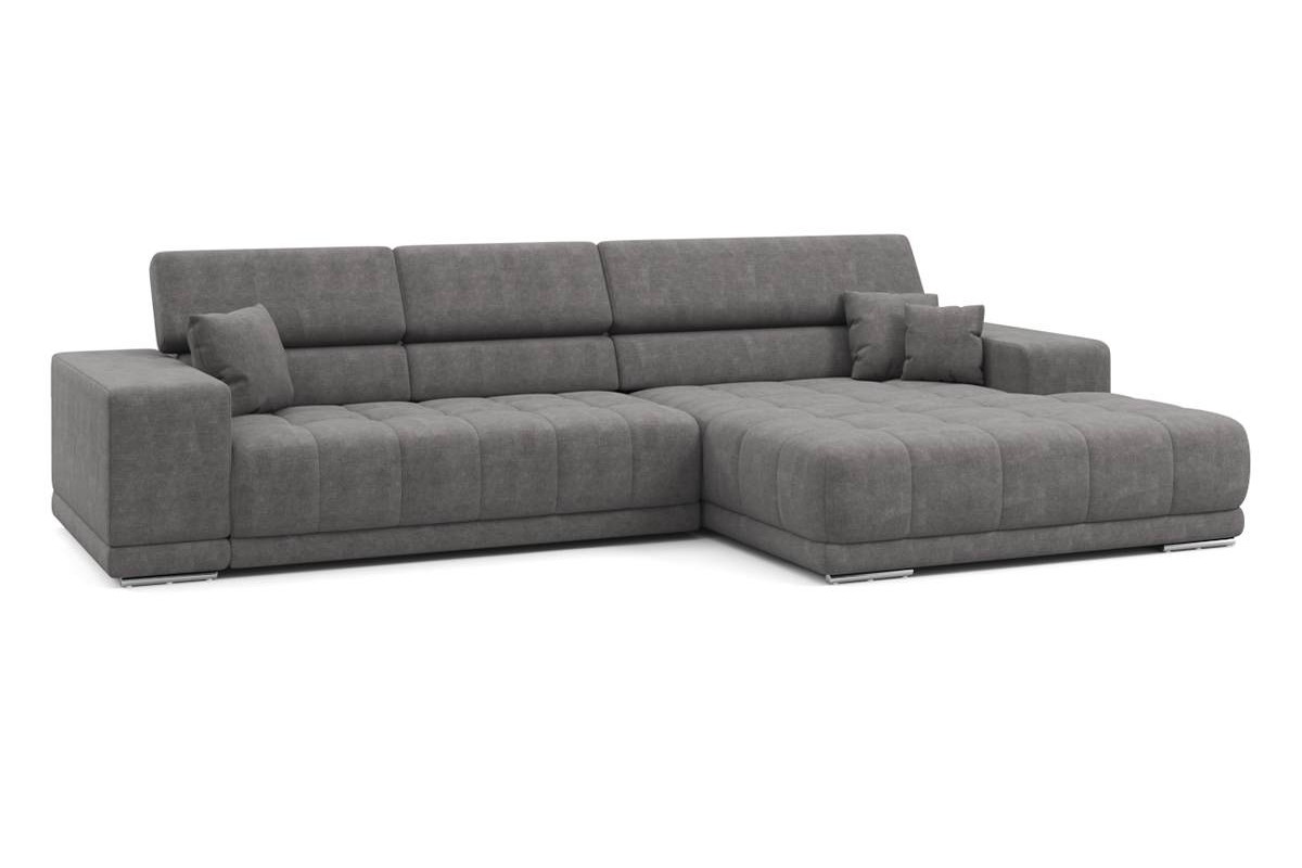 Угловой диван Satellite-S с широкой оттоманкой велюр серый 329х92х190 дерево артикул 10479356