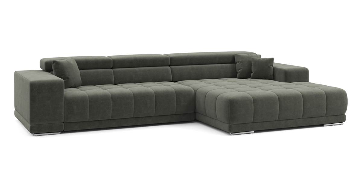 Угловой диван Satellite-S с широкой оттоманкой велюр зеленый 329х92х190 дерево артикул 10479359