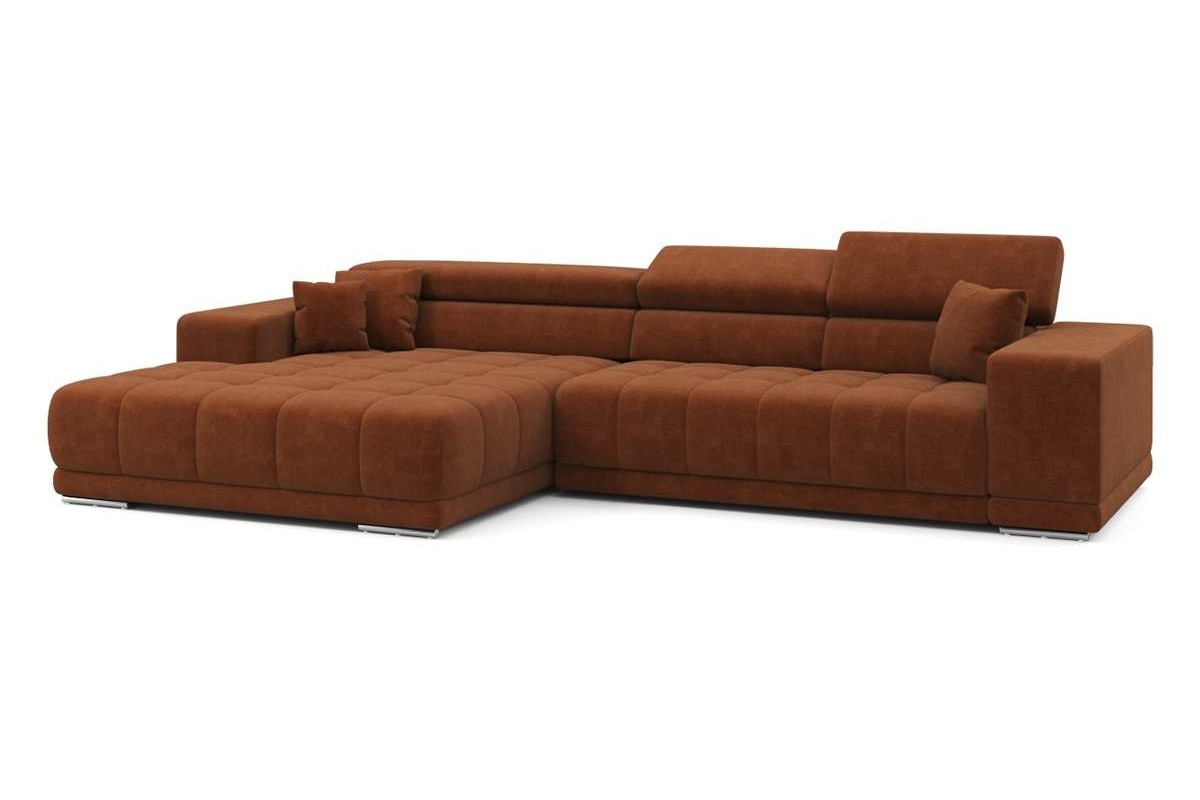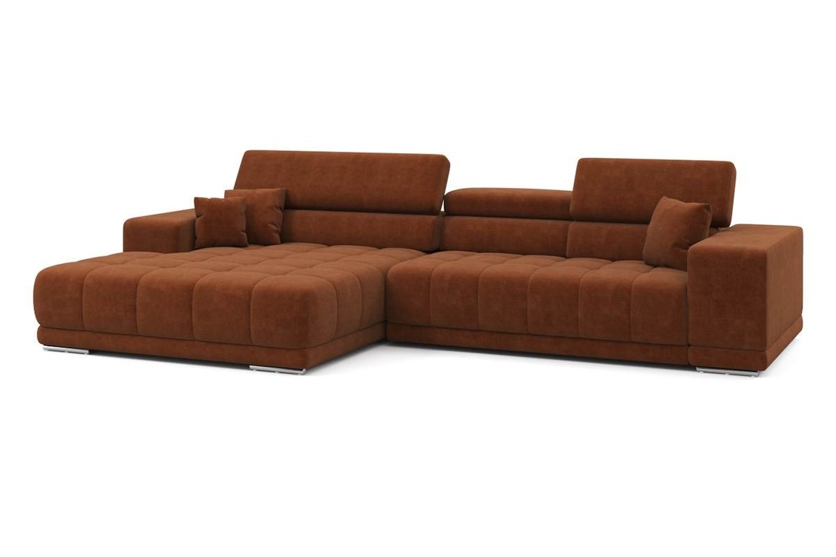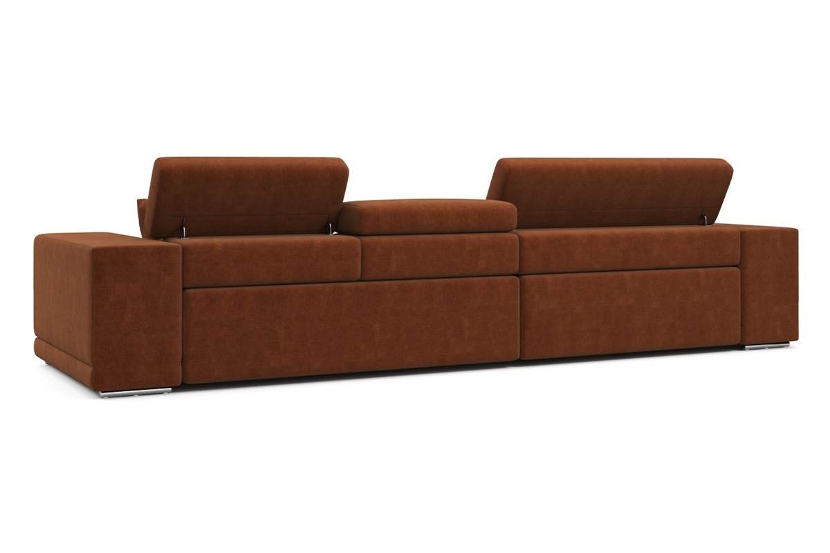 Угловой диван Satellite-S с широкой оттоманкой велюр оранжевый 329х92х190 дерево артикул 10479239