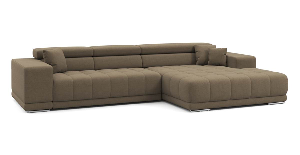Угловой диван Satellite-S с широкой оттоманкой микрошенилл коричневый 329х92х190 дерево артикул 10479365