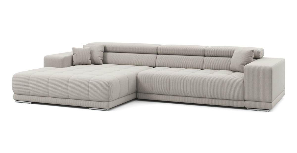 Угловой диван Satellite-S с широкой оттоманкой велюр серый 329х92х190 дерево артикул 10479391