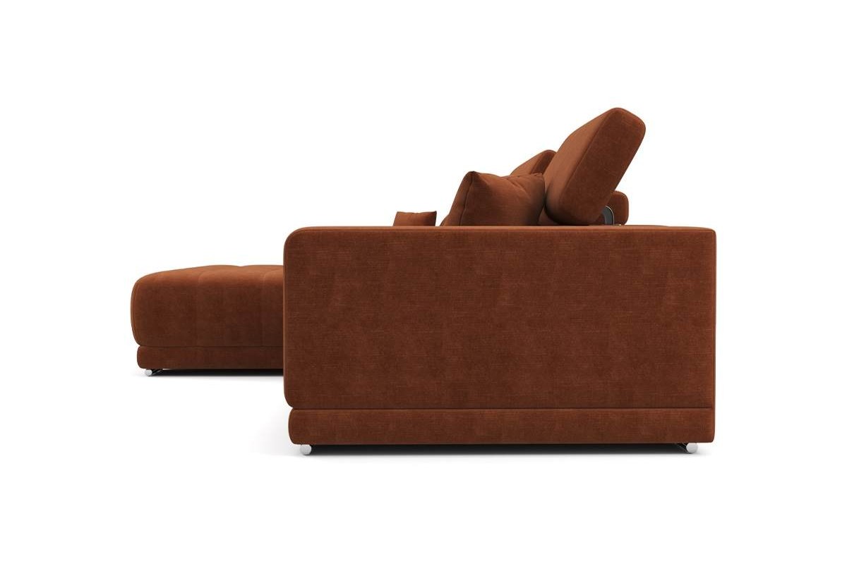 Угловой диван Satellite-S с широкой оттоманкой велюр оранжевый 329х92х190 дерево артикул 10479392