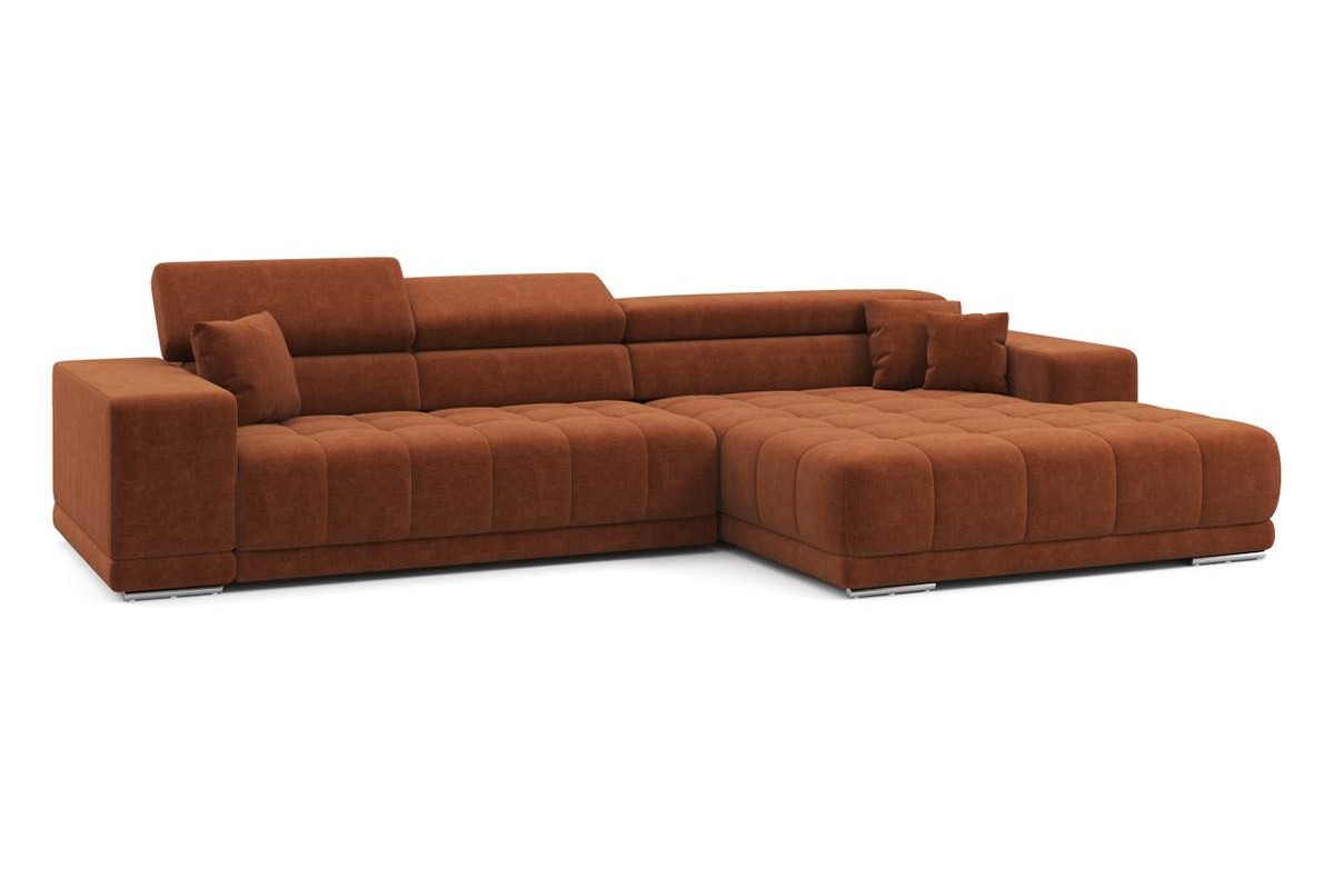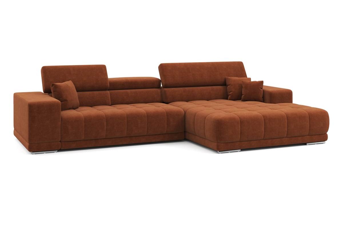Угловой диван Satellite-S с широкой оттоманкой велюр оранжевый 329х92х190 дерево артикул 10479405