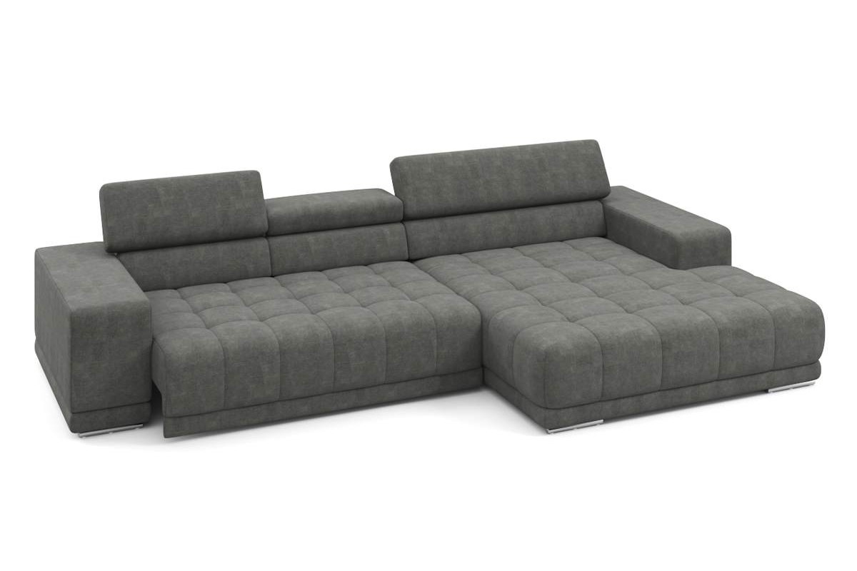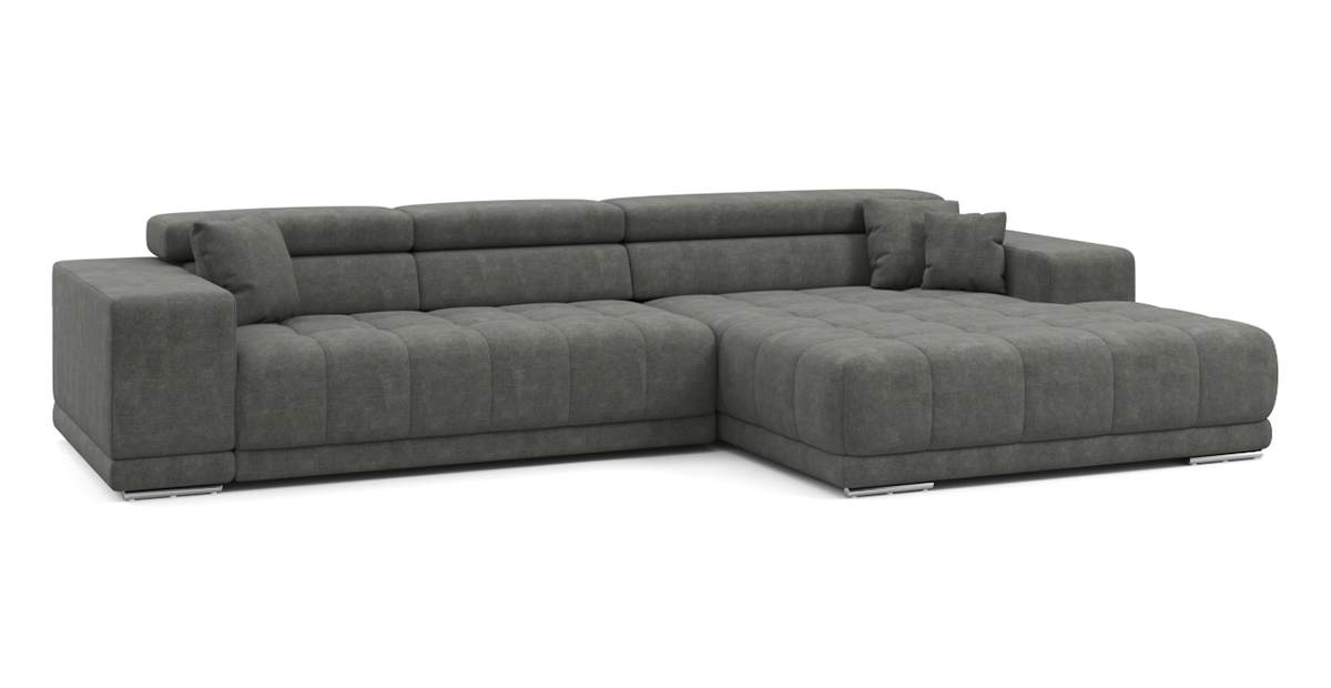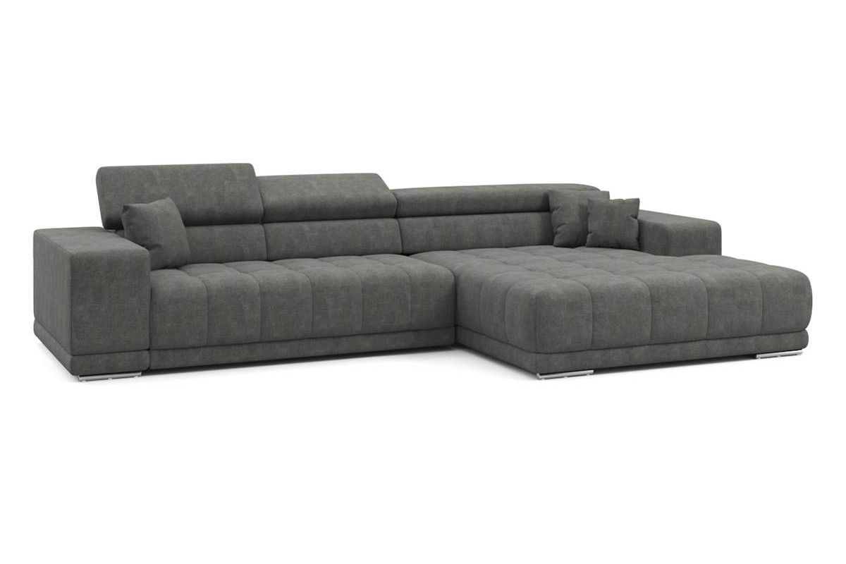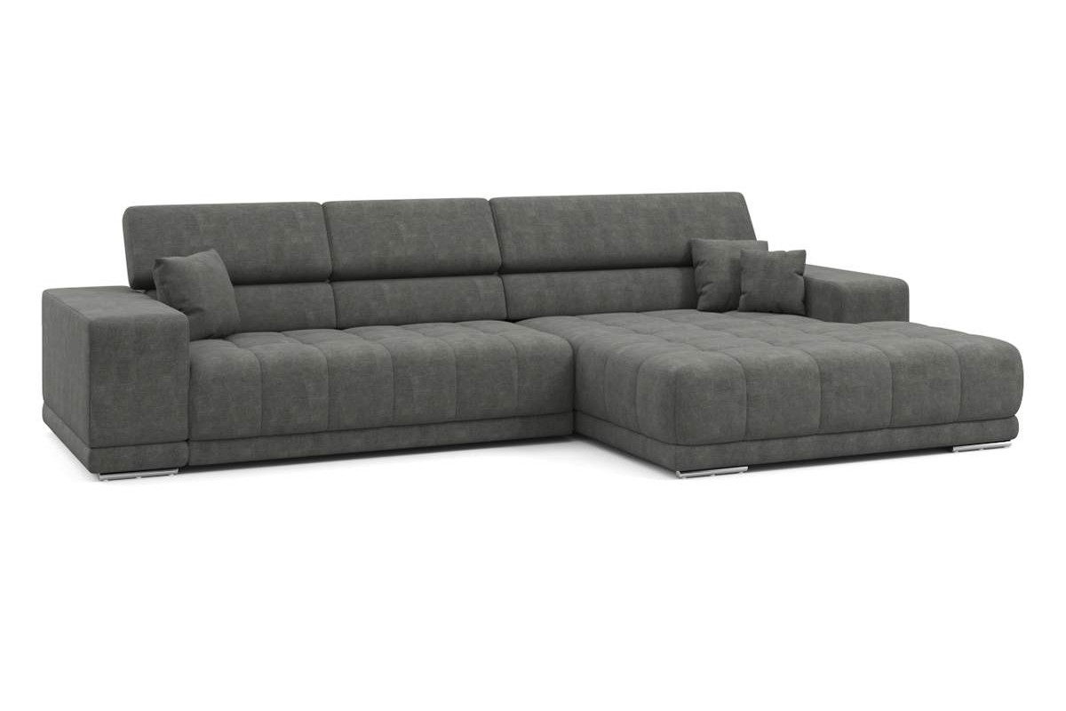 Угловой диван Satellite-S с широкой оттоманкой велюр серый 329х92х190 дерево артикул 10479408