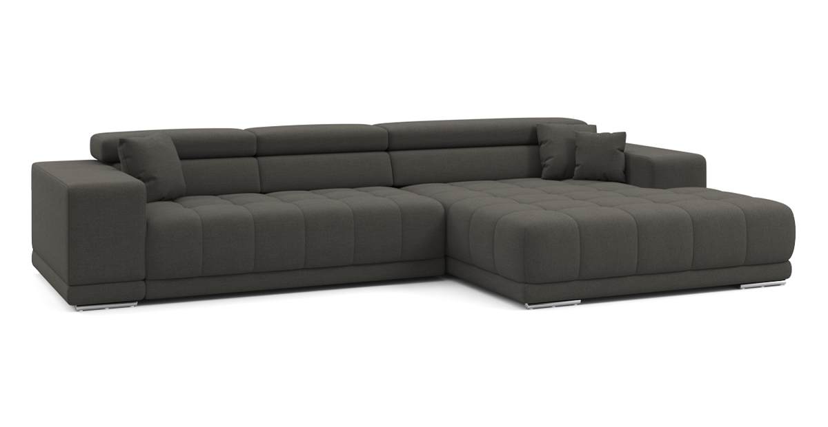 Угловой диван Satellite-S с широкой оттоманкой микрошенилл серый 329х92х190 дерево артикул 10479421