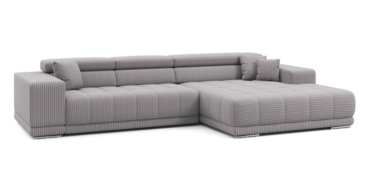 Угловой диван Satellite-S с широкой оттоманкой велюр серый 329х92х190 дерево артикул 10479619