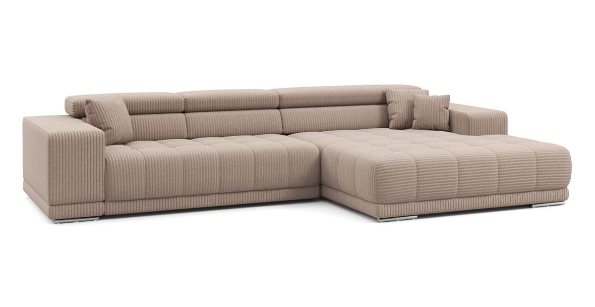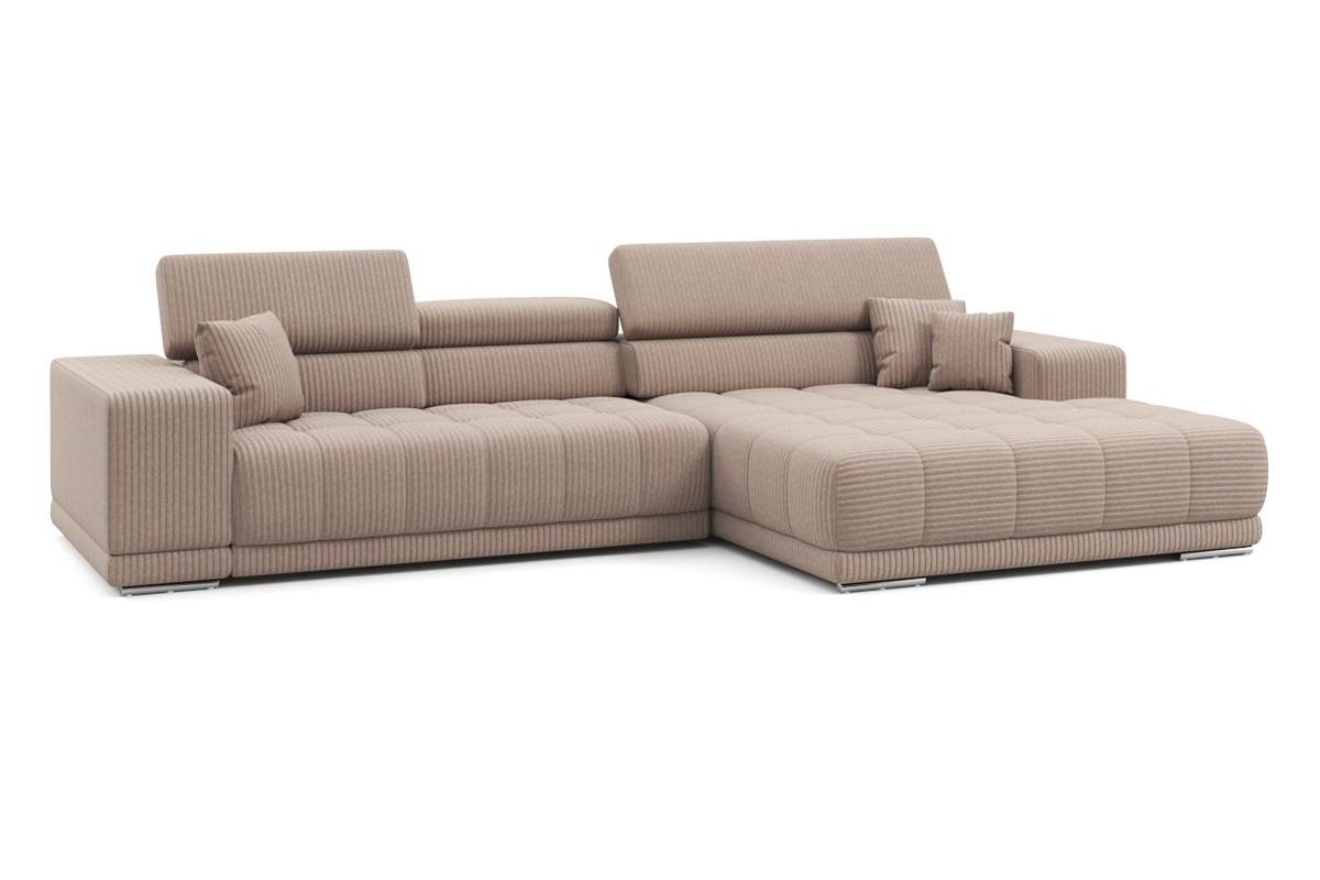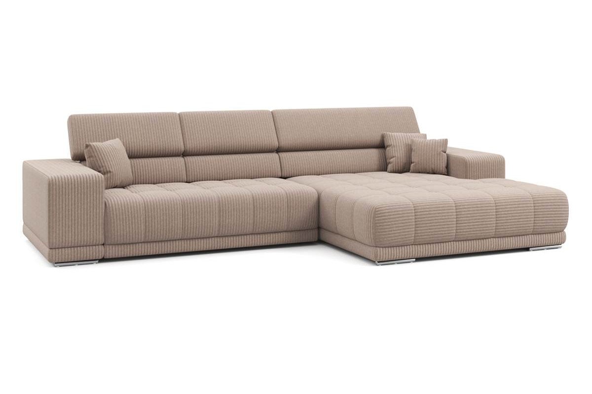 Угловой диван Satellite-S с широкой оттоманкой велюр бежевый 329х92х190 дерево артикул 10479647