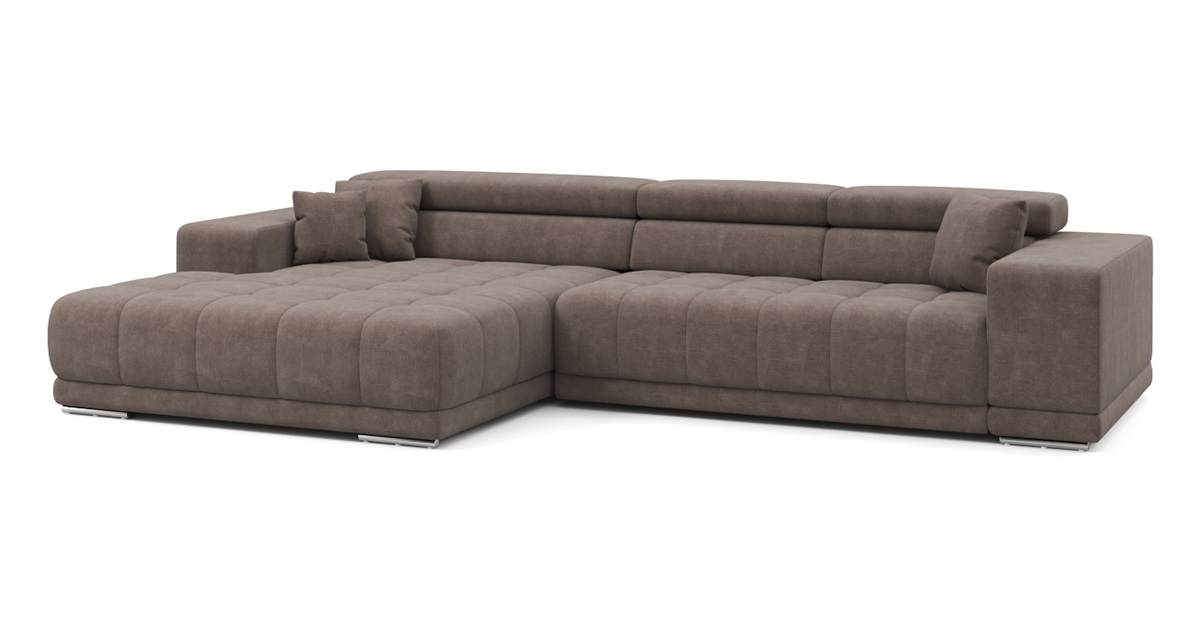 Угловой диван Satellite-S с широкой оттоманкой велюр коричневый 329х92х190 дерево артикул 10477103
