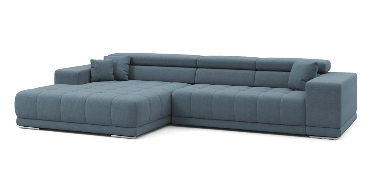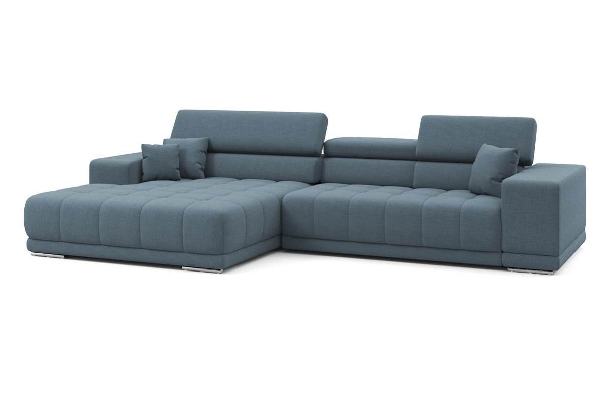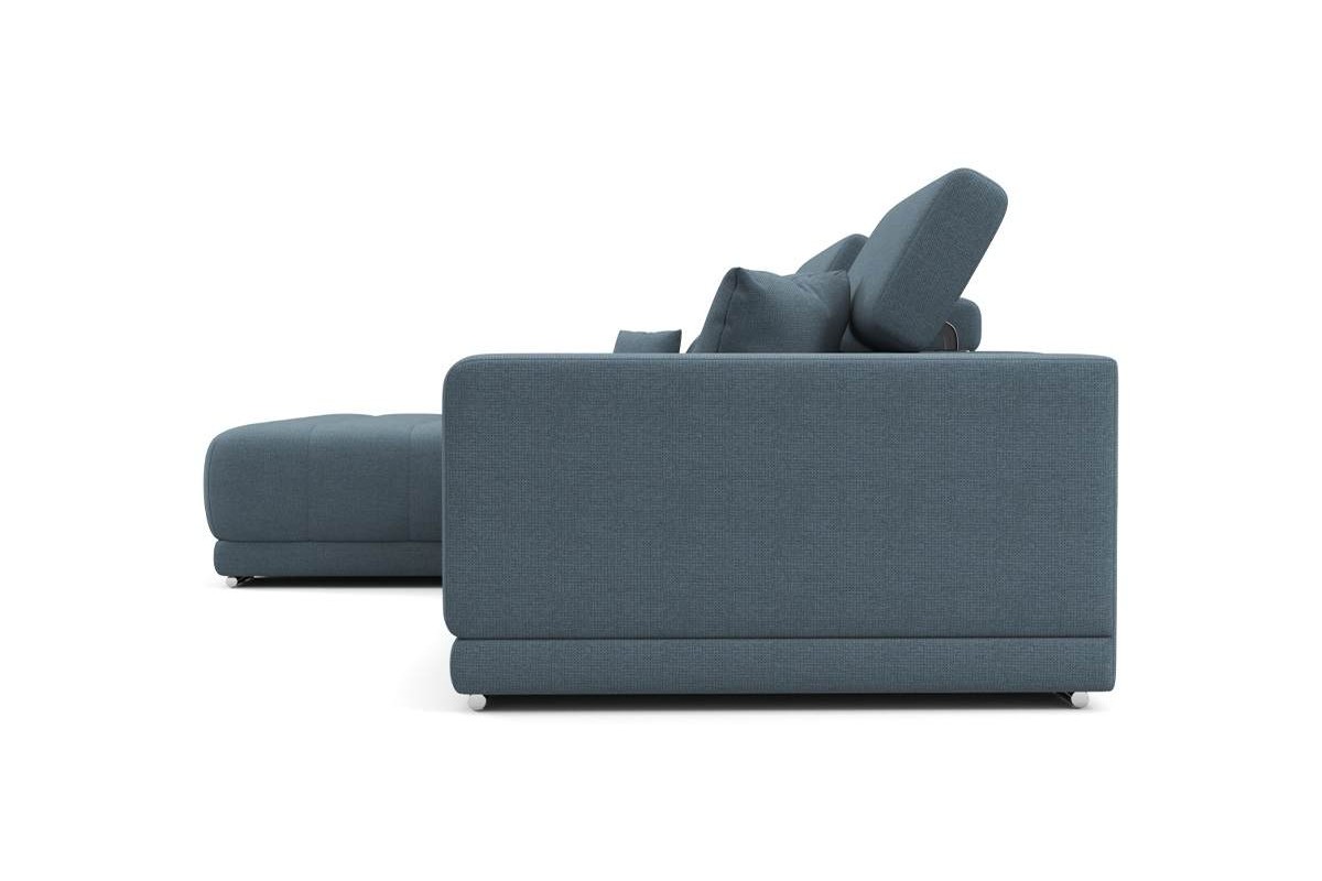 Угловой диван Satellite-S с широкой оттоманкой микрошенилл синий 329х92х190 дерево артикул 10479255