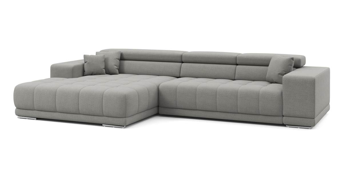 Угловой диван Satellite-S с широкой оттоманкой микрошенилл серый 329х92х190 дерево артикул 10479259