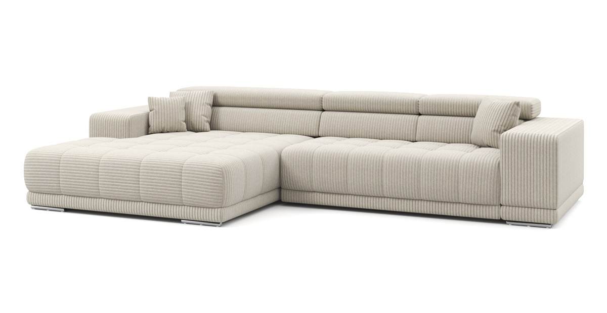 Угловой диван Satellite-S с широкой оттоманкой велюр бежевый 329х92х190 дерево артикул 10479261