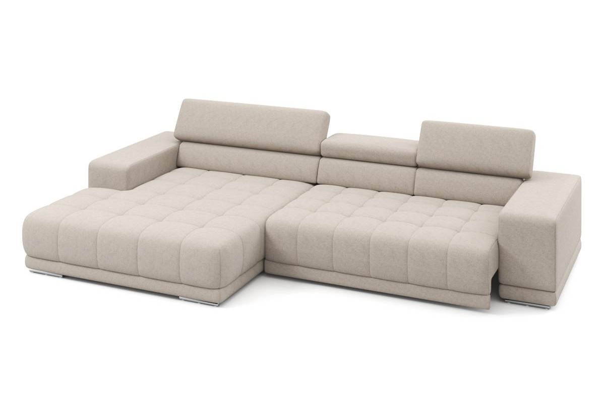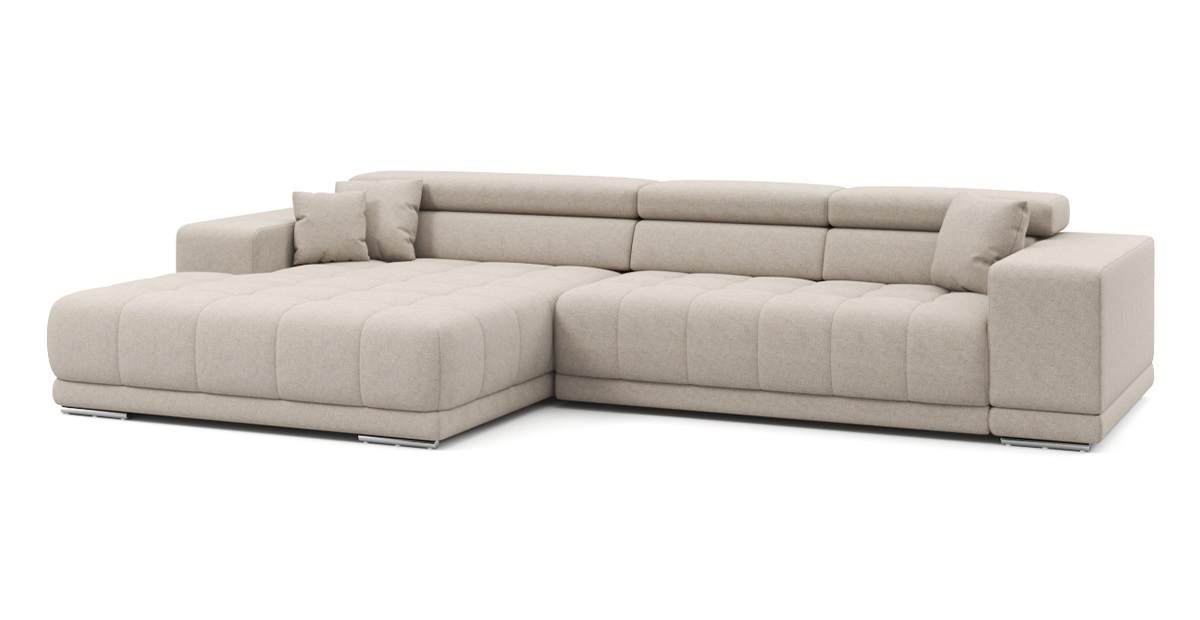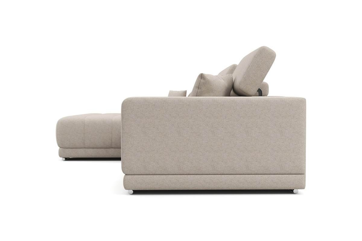 Угловой диван Satellite-S с широкой оттоманкой рогожка бежевый 329х92х190 дерево артикул 10479267