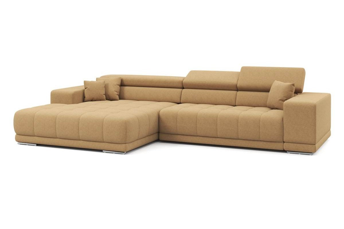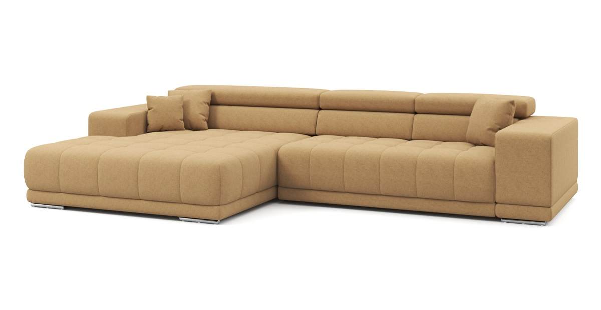 Угловой диван Satellite-S с широкой оттоманкой рогожка бежевый 329х92х190 дерево артикул 10479268
