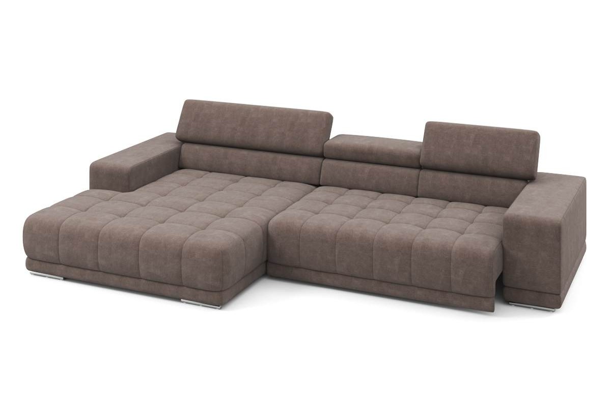 Угловой диван Satellite-S с широкой оттоманкой велюр коричневый 329х92х190 дерево артикул 10479230