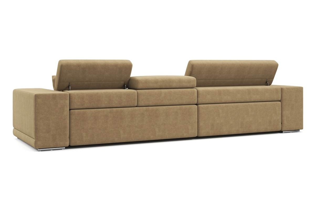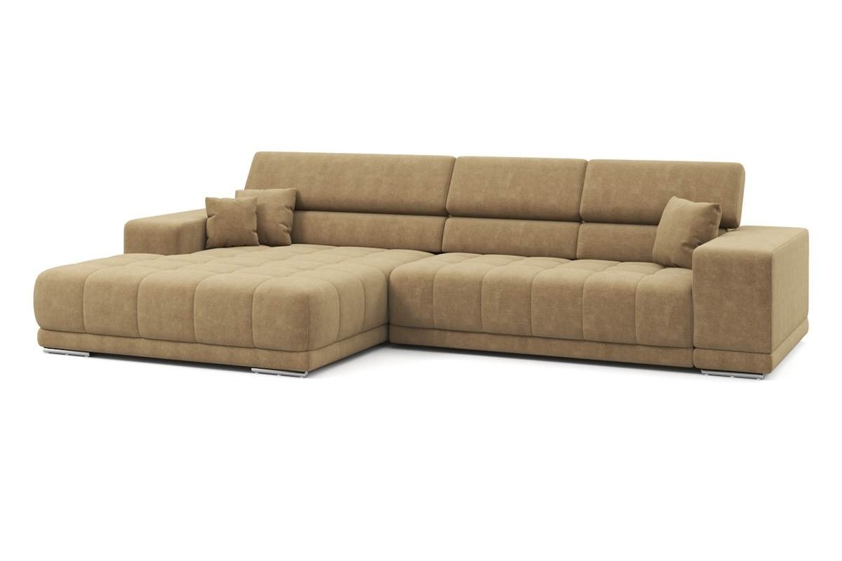 Угловой диван Satellite-S с широкой оттоманкой велюр бежевый 329х92х190 дерево артикул 10479279