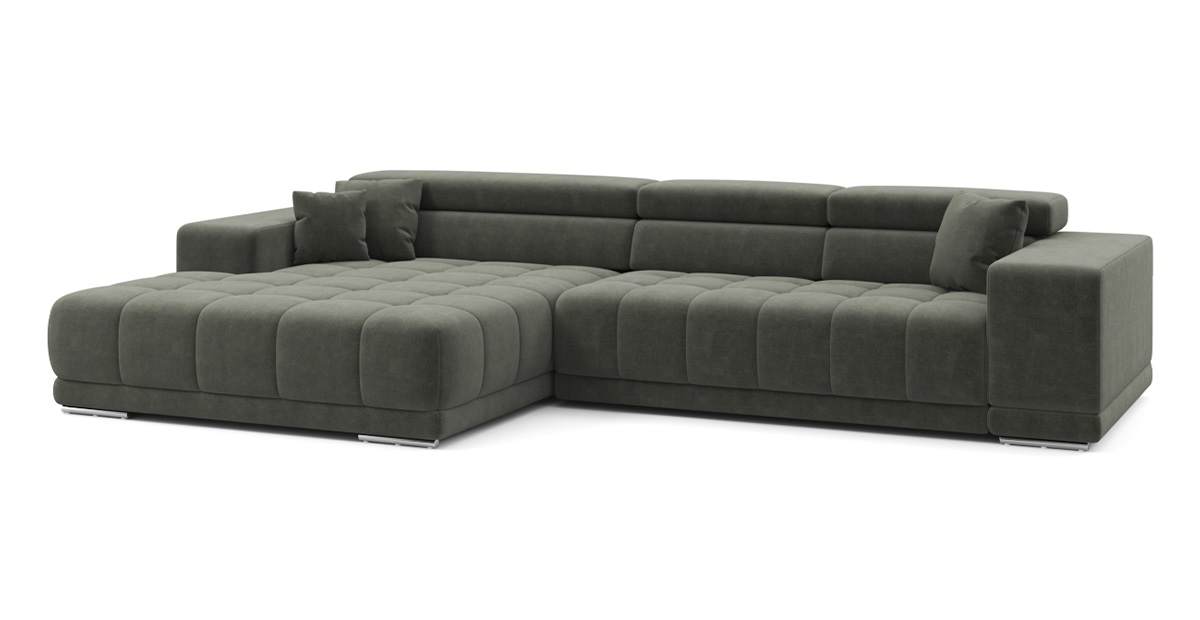 Угловой диван Satellite-S с широкой оттоманкой велюр зеленый 329х92х190 дерево артикул 10479287