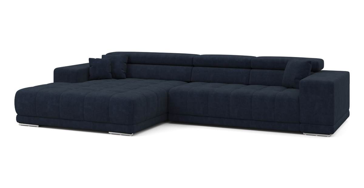 Угловой диван Satellite-S с широкой оттоманкой велюр синий 329х92х190 дерево артикул 10479290