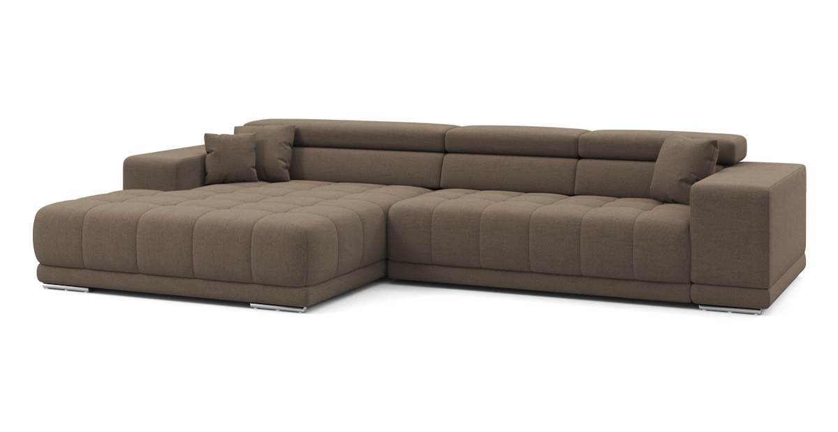 Угловой диван Satellite-S с широкой оттоманкой микрошенилл коричневый 329х92х190 дерево артикул 10479294
