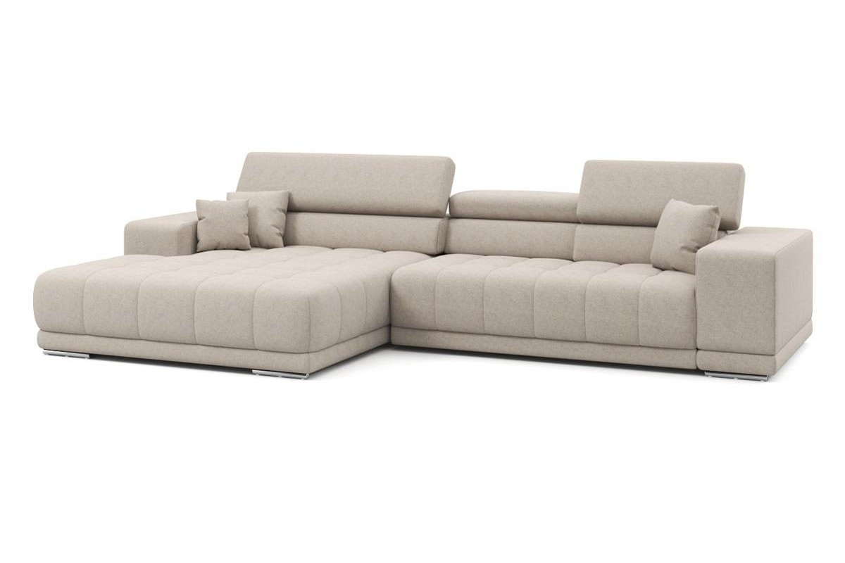 Угловой диван Satellite-S с широкой оттоманкой рогожка бежевый 329х92х190 дерево артикул 10479310