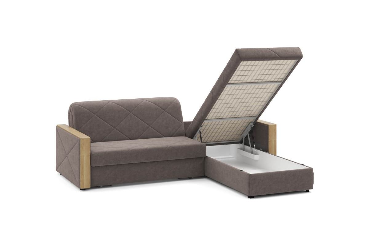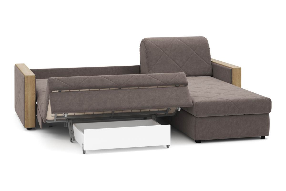 Угловой диван Токио NEXT 24 140 макси декор дуб ка аккордеон велюр коричневый 258х92х213 металлокаркас артикул 10276890
