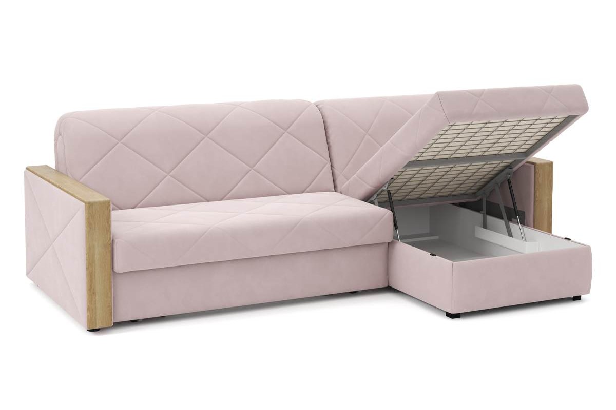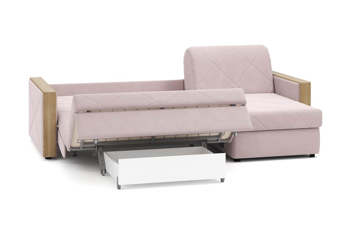 Угловой диван Токио NEXT 24 140 мини декор дуб кан аккордеон микровелюр розовый 258х92х158 металлокаркас артикул 10277016