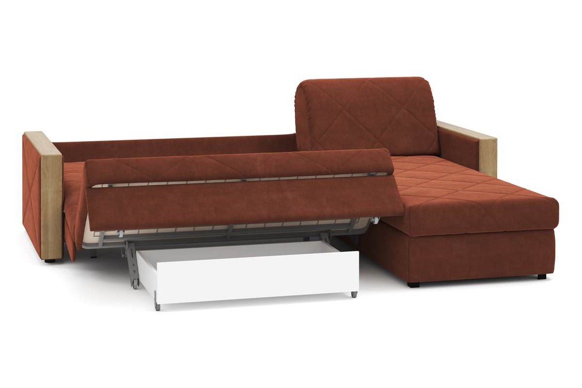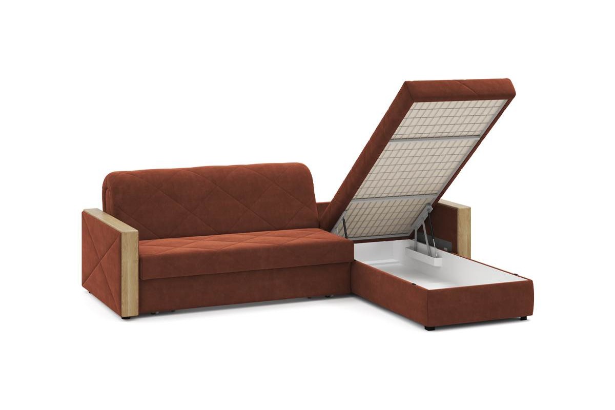 Угловой диван Токио NEXT 24 155 макси декор дуб ка аккордеон велюр красный 273х92х213 металлокаркас артикул 10271668