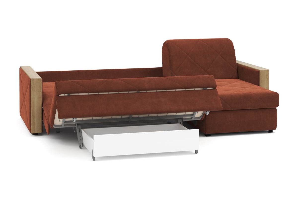 Угловой диван Токио NEXT 24 155 мини декор дуб кан аккордеон велюр красный 273х92х158 металлокаркас артикул 10269544