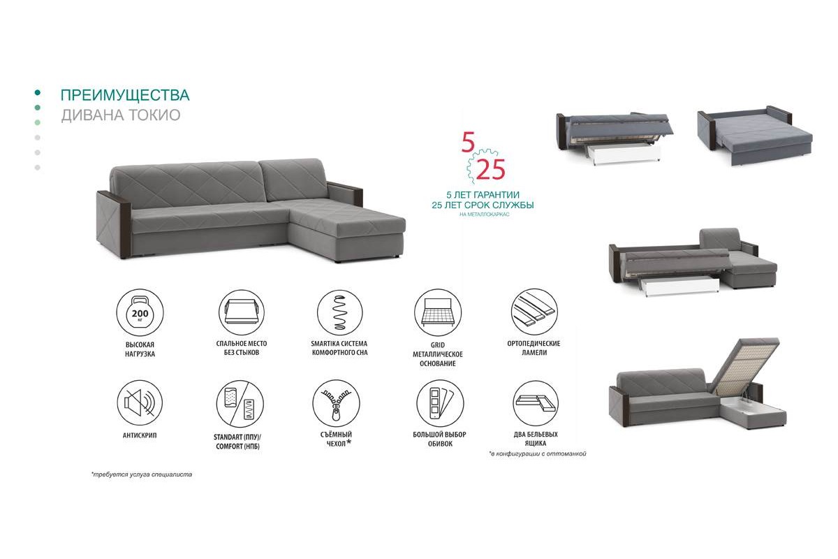 Угловой диван Токио NEXT 24 180 макси аккордеон велюр коричневый 298х92х213 металлокаркас артикул 10267982